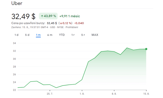 - Cenové predikce pak vypadají taktéž poměrně dobře, což svědčí o určité důvěře analytiků, kteří vidí UBER na 46,77$. V nejlepším možném případě pak až na 75$ za akcii a v tom horším scénáři odhadují pokles ke 27$, což není až tak drastické při pohledu na dnešních 32$ za akcii.