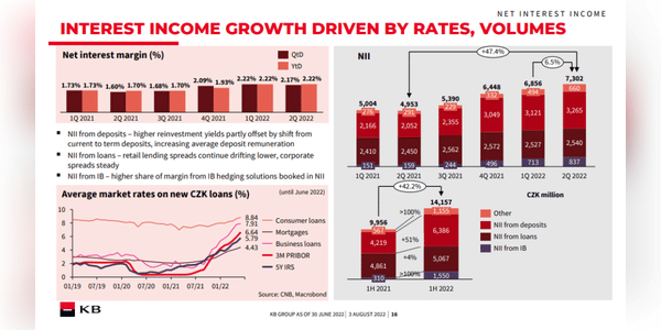Akcie Komerční banky dominovaly i ve druhém kvartále letošního roku. Hnací silou nebylo nic jiného, než vzrůstající úrokové sazby.