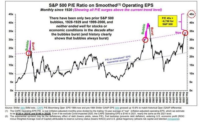 Podle týmu vedeného Barrym Bannisterem, výkonným ředitelem a tržním stratégem společnosti Stifel Equity Research, trh směřuje k blížícímu se splasknutí bubliny, protože "špatná měnová a fiskální rozhodnutí od COVID-19" jej posouvají do nejistého teritoria.