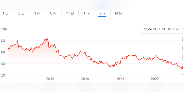 Jednou z výhod tohoto medvědího trhu je, že nám dává možnost nakoupit kvalitní společnosti často za extrémně nízké ceny. Výnosy budou však mnohem vyšší než obvykle pokud vybíráme akcie vyplácející dividendy. Zde jsou 2 akcie, které se nejen obchodují blízko mnohaletých minim, ale jejich dividendový výnos přesahuje 5 %.