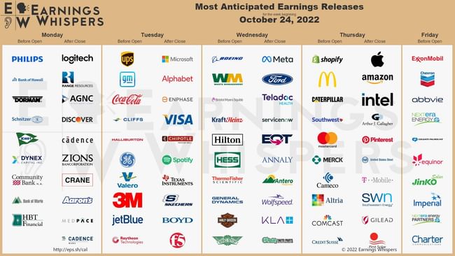 Týdenní kalendář: přehled firem výsledkové sezóny v USA za 3. čtvrtletí, zdroj: Earning Whispers