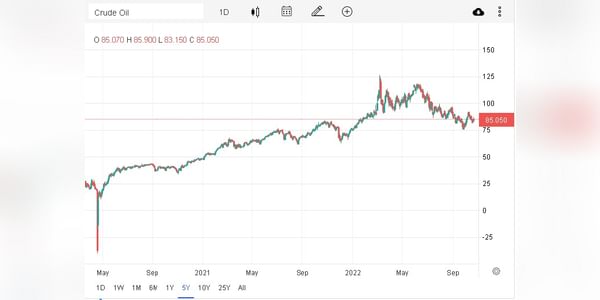Hlavním důvodem je cena ropy a zemního plynu, která v tomto roce razantně rostla, z čehož samozřejmě profitují společnosti jako je například $CVX , $XOM , $OXY . Cena ropy se v první polovině roku pohybovala přes 100$ za barel. Sice cena nyní padá, kdy nyní se pohybujeme kolem 85$ za barel, ale cena je stále výše než minulý rok, kdy byla na konci minulého roku okolo 66$ za barel.
