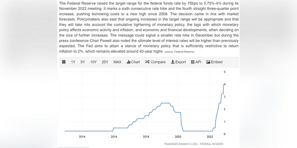 Americká centrální banka nastoupila jedno z nejagresivnějších temp v historii, kterým zvyšuje náklady na půjčky a zpomaluje ekonomiku. Politici již zvýšili základní úrokovou sazbu federálních fondů z téměř nulové hodnoty v březnu na rozmezí 3,75 až 4 %, což je nejvyšší hodnota od finanční krize v roce 2008.