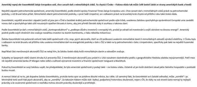 Exxon Mobil žaluje EU z daň z nadměrných zisků u energetických společností. Partner Hobby Investor Bulios Black Tento uživatel má díky předplatnému přístup k exkluzivnímu obsahu, nástrojům a funkcím. @hobbyinvestor >2y 0 Sdílet Facebook LinkedIn Messenger Twitter WhatsApp