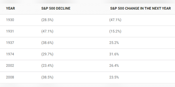 Index S&P 500 je na nejlepší cestě zakončit rok 2022 poklesem o téměř 20 %. To se od roku 1928 stalo pouze šestkrát a ve čtyřech z těchto případů dosáhl index v následujícím roce výnosu vyššího než 20 %.