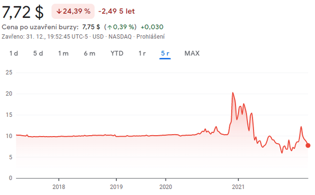 Druhou akcií, na kterou se podíváme, je stejně jako výše uvedená společnost Canoo vysoce spekulativní konstruktér a výrobce elektromobilů, který se stále nachází v předvýrobní fázi.