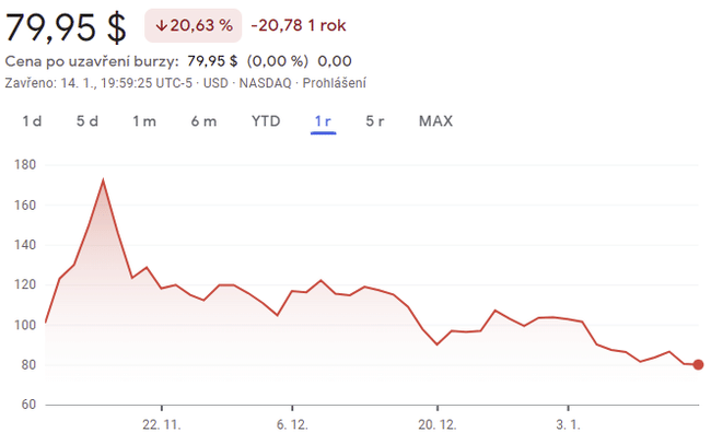 Akcie společnosti Rivian $RIVN jsou na ceně 79,95 dolarů, což je blízko jejich IPO ceny 78 dolarů, ale pokles o více než 50 % oproti jejich vrcholu v polovině listopadu. Navzdory tomuto poklesu není ocenění společnosti Rivian o mnoho nižší než ocenění společnosti Ford $F, což je vzhledem k momentálním výsledkům Rivianu podle mě absurdní.