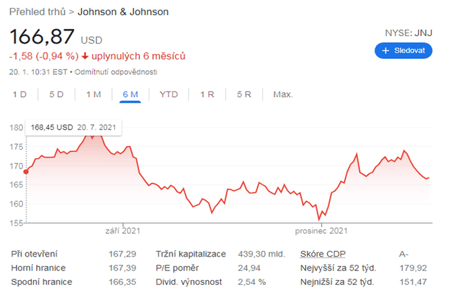 V dubnu loňského roku společnost Johnson & Johnson oznámila již 59. po sobě jdoucí zvýšení roční dividendy. Akcie v současné době vynášejí 2,5 %, což je téměř dvakrát více než průměrný výnos indexu S&P 500.