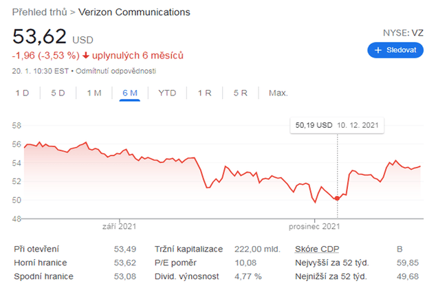 Společnost Verizon byla v roce 2021 novým přírůstkem do Buffettova portfolia. A je to pořádně tučný podíl: Na konci třetího čtvrtletí vlastnila Berkshire téměř 159 milionů akcií tohoto telekomunikačního gigantu.