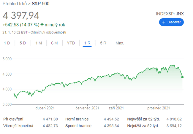 Výprodeje, které akciový trh v lednu zatím zaznamenal, jsou jen malou ukázkou toho, co přijde, varuje hlavní stratég Morgan Stanley Mike Wilson. "Zatímco průměrné akcie zaznamenaly poměrně velký pokles, hlavní průměry mají před sebou ještě dobrých 10 % poklesu," řekl v pořadu Yahoo Finance Live. Je třeba se obávat?