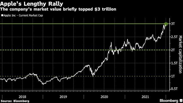 Nelze sestavit seznam kvalitních akcií Warrena Buffetta, aniž bychom do něj zařadili Apple. Největší akciový podíl Berkshire představuje 45 % z 349 miliard dolarů v portfoliu. Apple se právě stal první společností s hodnotou 3 biliony dolarů. I když se pravděpodobně bude ještě nějakou dobu pohybovat nad a pod touto symbolickou hranicí, vypovídá to o jeho postavení v technologickém sektoru.