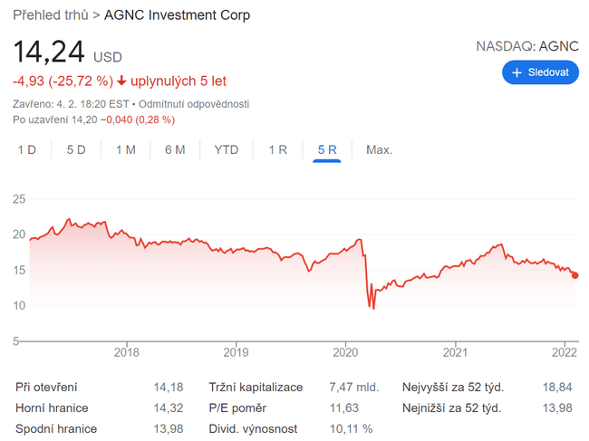 Doporučovat AGNC, který má dividendový růst za 10 let (DGR10) -12%? To jako fakt???