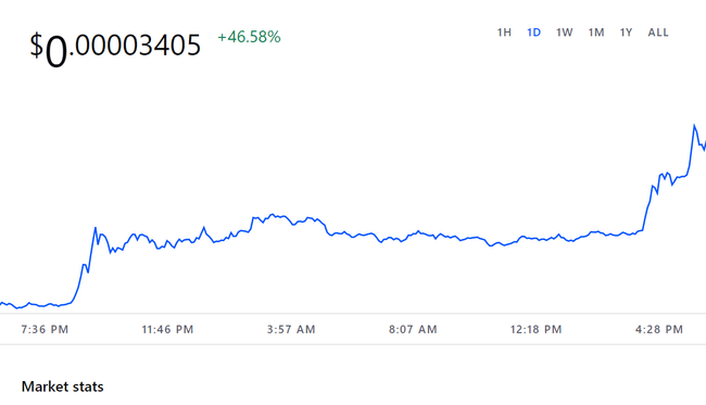 Token se aktuálně obchoduje za 0,00003405 USD, což představuje obrovský nárůst o 46 % za posledních 24 hodin.