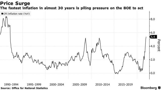 Inflace byla v posledních měsících hlavním tématem debat na Wall Street. Poslední měsíční údaj o indexu spotřebitelských cen ukázal 7% inflaci ve srovnání s předchozím rokem, což je největší meziroční nárůst od roku 1982. Předseda Fedu Jerome Powell nedávno uvedl, že normalizace dodavatelského řetězce by měla pomoci zmírnit inflační tlaky v roce 2022, ale poznamenal, že Fed je připraven přijmout agresivní opatření, aby inflaci odvrátil, pokud to bude nutné.