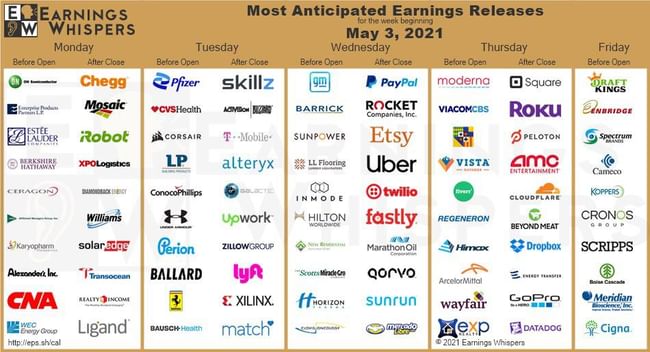 Tešit se můžeme na $PFE, $CVS, $CRSR, $RACE, $COP, $ATVI, $LYFT, $GM, $GOLD, $2PP, $ETSY, $UBER, $MRNA, $SQ, $ROKU, $PTON, $AMC, $BYND, $DKNG a mnoho dalších. Nuda to nebude!