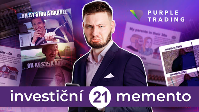 Máte rádi memečka? Protože analytici, investoři a obchodníci je přímo milují a mnohdy se jimi informují o aktuálně nejdůležitějších investičních událostech. Investor a člen Purple Trading Clubu, Petr Lajsek, pro vás každý týden prochází internetové diskuze a fóra a sbírá ty nejpovedenější z vtípků. Ty pak rozebere, dodá k nim kontext a doplňující informace z trhů. To vše pak shrne do videa, na které se stihnete podívat u odpoledního kafe. Dnes vyšlo v pořadí již 21. vydání Investičního Mementa. Na co se můžete těšit?