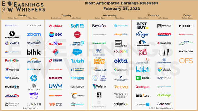 - Pondělí: hned na začátku týdne oznámí své výsledky hospodaření společnost Warrena Buffetta Berkshire Hathaway $BRK-A, dále bych vyzdvihl společnosti jako LUCID $LCID vyrábějící elektrická auta, softwarovou firmu Zoom $ZM, výrobce léčiv Novavax $NVAX a HP $HPQ podnikající na poli informačních technologií.