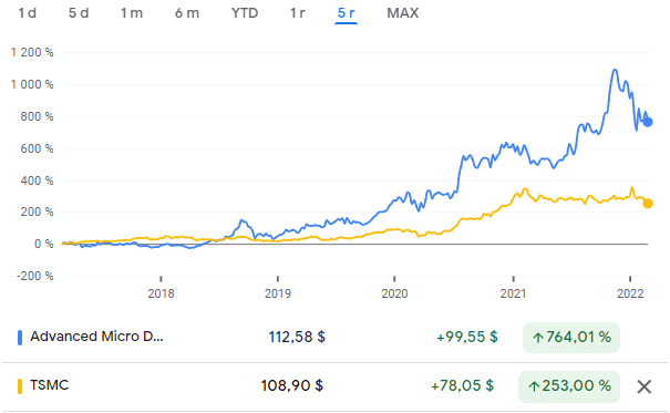 V současné době působí na trhu s polovodiči celá řada firem. Ty 2 nejznámější a zároveň největší společnosti, o kterých se nejvíce mluví jsou Advanced Micro Devices $AMD a Taiwan Semiconductor Manufacturing $TSM. V tomto článku se pokusíme zhodnotit, která z nich je dnes výhodnější volbou pro investory.