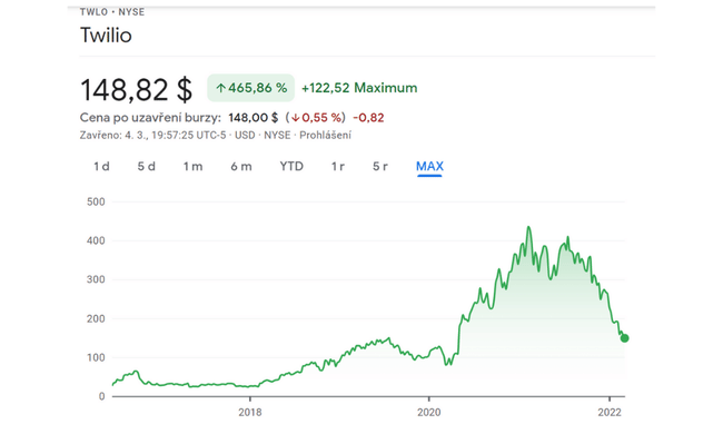 Akcie Twilio od svého vstupu na trh vzrostla již o 465%, aktuální propad ceny nám tak vytváří příležitost pro vstup