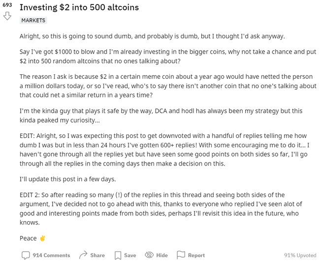 https://www.reddit.com/r/CryptoCurrency/comments/rv5xdw/investing_2_into_500_altcoins/