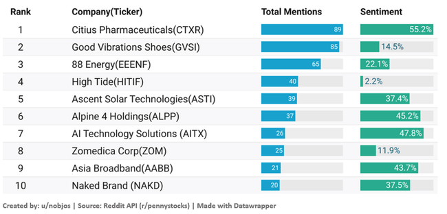 Jako každé pondělí, i dnes tu máme souhrn nejdiskutovanějších penny stocks z Redditu, včetně sentimentu, který je provází. Nějaké překvapení?
