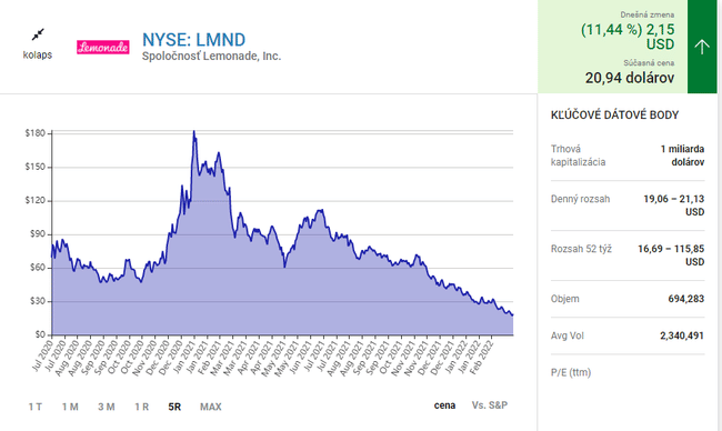 Podľa analytikov z Motley Fool je možné, že Lemonade $LMND by mohla generovať 100-násobné výnosy v nasledujúcich 15 až 20 rokoch. Posledných niekoľko štvrťrokov bolo pre podnikanie ťažkých, pretože vysoká inflácia a potenciálne zvýšenie úrokových sadzieb znásobili dopad trochu neuspokojivých finančných výsledkov. Z tohto dôvodu akcie tejto spoločnosti klesli o 85 % zo svojho maxima. To ale môže vytvoriť príležitosť na BUY THE DIP. Vypíšeme si dôležité informácie o tejto spoločnosti.