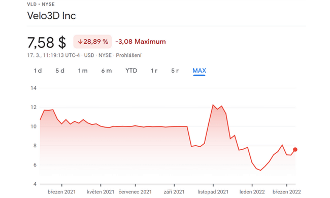 Platforma Sapphire společnosti Velo3D $VLD je řešení pro 3D tisk kovů, která pomáhá společnostem vytvářet specializované díly. Slouží odvětvím letectví, kosmonautiky, letecké dopravy, průmyslové energetiky a ropného a plynárenského průmyslu, která mají hluboké seznamy kritických dílů. Společnost Velo3D $VLD je stále velmi malá, v loňském roce dosáhla tržeb ve výši 27,4 milionu dolarů.