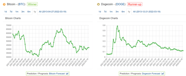 Podívejme se třeba na graf$DOGEUSD a $BTCUSD.