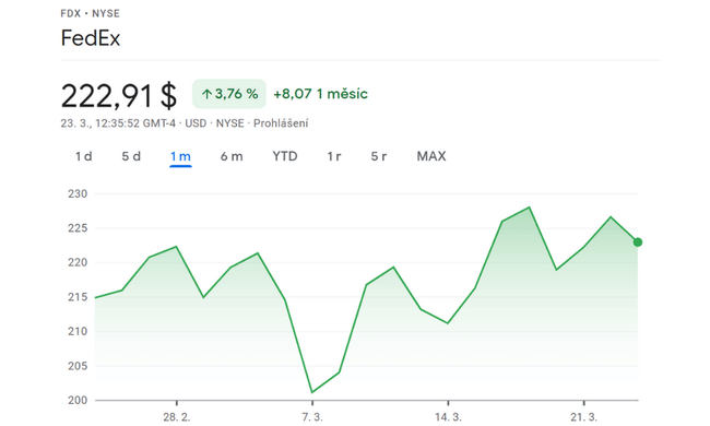 Společnost $FDX s obratem 58,7 miliardy dolarů poskytuje obchodní, dopravní a e-commerce služby v různých zemích. Volatilita trhu nám nabízí velmi dobré vstupní podmínky, kdy je společnost aktuálně o 29% dole od svých ATH.