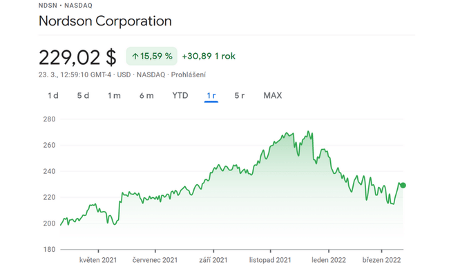 Velmi užitečná a efektivní společnost, tak bych popsal $NDSN, která je za poslední rok o 15,59% na akcii silnější.