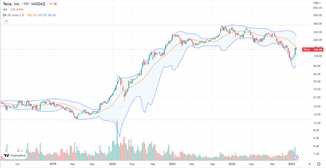 Výkonnost společnosti Tesla, Inc. za 5 let. Zdroj: tradingview.com