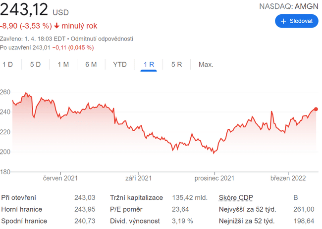 Celkově vzato má společnost Amgen dobrou pozici k tomu, aby v dohledné budoucnosti nadále dosahovala růstu, který překonává trh. Její špičkový dividendový program by měl také pomoci překonat nepříjemné situace na tomto mimořádně volatilním trhu.