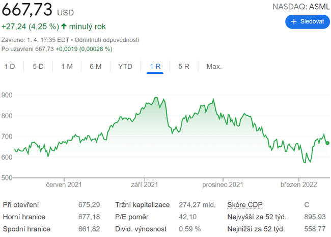 ASML Holding N.V. $ASML je společnost, která je nedílnou součástí polovodičového průmyslu. Je to jediná firma na světě, která je schopna vyrábět pokročilé stroje na výrobu čipů. Díky tomu je nepostradatelná pro všechny velké i malé světové výrobce čipů.