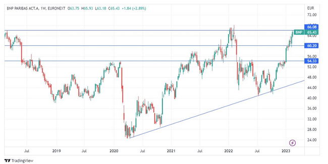 BNP Paribas je ikonou špičkového bankovníctva. Banka so sídlom vo Francúzsku a trhovou kapitalizáciou vyše 85 miliárd dolárov bola v roku 2022 tvrdo zasiahnutá katastrofálnymi poklesmi na trhu, ktoré boli spôsobené politickými nepokojmi, vysokou infláciou a neochotou investorov požičiavať si a utrácať, ale v uplynulom štvrťroku sa jej podarilo pôsobivo zotaviť a je na ceste k výbornému roku 2023.