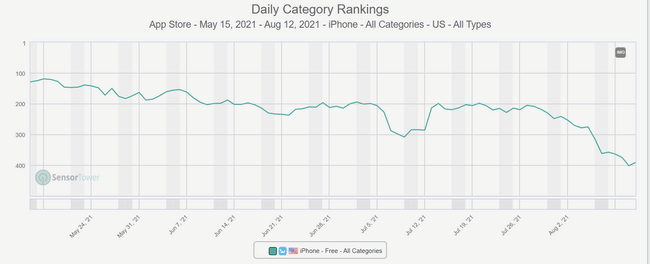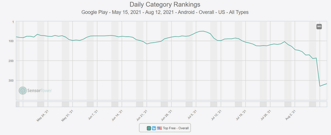 Chápu, že $WISH je teď extrémně oblíbenou meme akcií a že investoři do meme akcií si masochisticky libují v tom, když se jim zmenšuje konto, ALE... Pokud jste dávali pozor při představování výsledků téhle firmy za 2Q, mohli jste si všimnout, že firma se chce místo akvizic nových zákazníků zaměřovat na péči o ty stávající. Proč? Protože náklady na akvizici nových zákazníků začínají být neúnosné. To je samo o sobě dost špatným signálem značícím možné zpomalení růstu. Horší to však je, když si člověk uvědomí, že to není nějaký prozíravý krok vedení, ale jen reakce na již probíhající trend. Když se totiž podíváte na stahovanost appky Wish na Androidu a Applu v US, uvidíte děsivou realitu...po několika měsících stagnace přišel rapidní srpnový propad. Au.