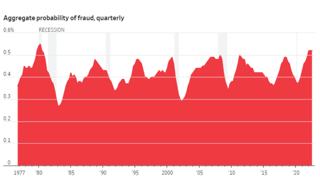 "Domníváme se, že se jedná o měřítko dezinformací v ekonomice," řekl Dr. Beneish. Nové agregované měření ukazuje, že kolektivní pravděpodobnost podvodů u velkých společností je nejvyšší za posledních 40 let!