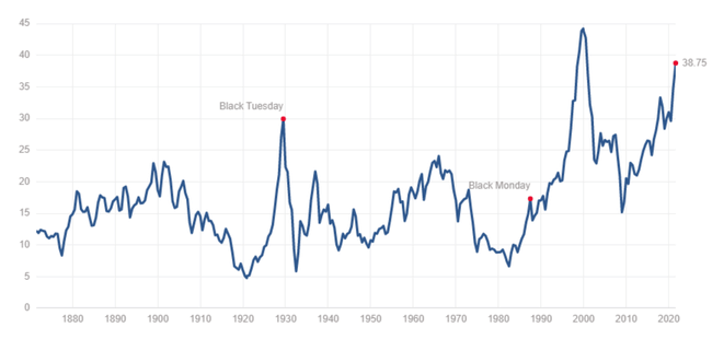 Tahle metrika dosáhla 38,75 bodů a dnes mě opravdu začíná děsit...Jak jste na tom vy? Jan Švach Bulios Black Tento uživatel má díky předplatnému přístup k exkluzivnímu obsahu, nástrojům a funkcím. @jansvach >4y Na obrázku níže vidíte Shillerův poměr P/E od cirka roku 1830. Zřetelně jsou vidět všechny významné krachy v historii 🤔 6 Sdílet Facebook LinkedIn Messenger Twitter WhatsApp