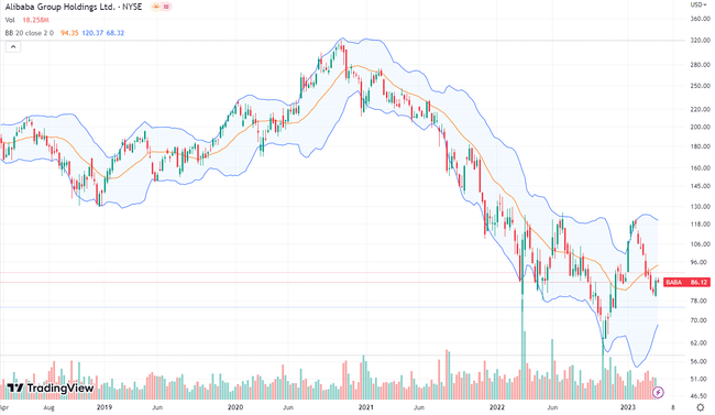 Výkonnost společnosti Alibaba Group Holdings Ltd. ADR za 5 let. Zdroj: tradingview.com