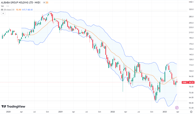 Výkonnost akcií Alibaba Group Holding LTD od jejich uvedení na Hongkongskou burzu. Zdroj: tradingview.com
