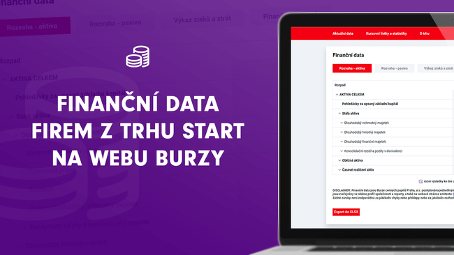 Zajímá vás finanční rozvaha, P/E ratio nebo EBITDA firem z trhu START? Do detailu cenného papíru jsme přidali novou záložku "Finanční data", ve které najdete veškeré finanční ukazatele společnosti. Užitečnou funkcí je i jednoduchý export do formátu XLS, který umožňuje každému další zpracování.