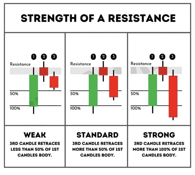 Toto může pomoct nejenom traderům, ale i investorům, kteří chtějí perfektně načasovat vstup a výstup ze své pozice. Support a rezistenci jistě všichni známe, ale věděli jste, že se dá pomocí jednotlivých svíček určit i jejich síla? Pokud ne, tak tady máte menší tahák.😉👇