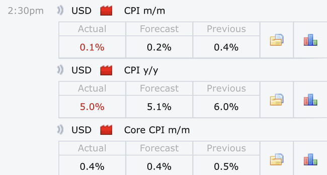 Inflace v USA klesla více než se čekalo což je pozitivní zpráva! Aktuální y/y inflace je 5% proti očekávání 5,1%. Core CPI je na úrovni 0,4%