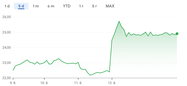 Společnost Palantir Technologies $PLTR dosáhla ve svém posledním čtvrtletí velmi zajímavých výsledků, které se postaraly o čtvrteční nárůst akcií. Ty poskočily o 15 % a přehouply se přes hranici 25 dolarů za kus, kterou se jim přes měsíc a půl nedařilo překonat.