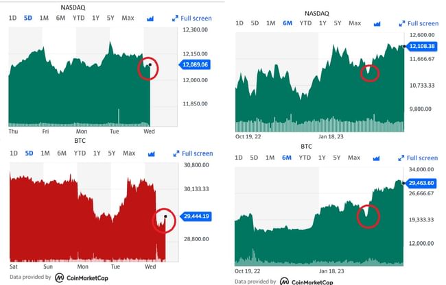 Ano, také jsem to postřehl před 2 lety. Bitcoin se pohyboval téměř na chlup přesně jako $QQQ . Šlo to možná hezky obchodovat, ale proč brát takto rizikové aktivum, když si mohu stejně zobchodovat zmíněný Nasdaq. Označení “tech na speedu” je super😅