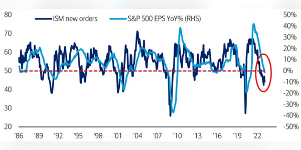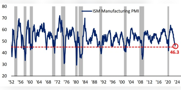 Březnový index nákupních manažerů (ISM) dosáhl hodnoty 46,3, což je nejnižší úroveň od května 2020. Historicky pokles tohoto indexu pod hodnotu 45 znamenal recesi v 11 z 12 případů za posledních 70 let. Jak tedy můžeme vidět, tak jsme nyní už jenom kousek od tohoto bodu, kde ekonomika ve většině případů spadla do recese.