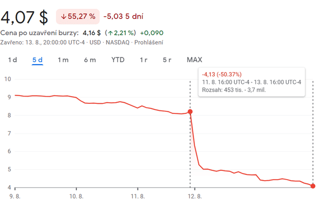 Myslím, že v pondělí dojde k velkému obratu. Mohlo by se jednat o masivní krátkodobou, a dokonce i dlouhodobou příležitost, která se jen tak nebude opakovat. Akcie se na momentální hodnotě 4,07 dolarů staly defacto penny akcií, což je upřímně ve srovnání s obchodním modelem firmy a jejím potenciálu naprosto směšné…teda alespoň podle mě. Sám jsem si pozici prozatím neotevřel a počkám si, jak se situace vyvine v pondělí v premarketu, ale vůbec bych se nedivil, kdyby se to točilo zpátky zase alespoň k 5$ na akcii hned teoreticky v pondělí. Pokud se podíváme na Tipranks, tak tam analytici odhadují cenu (správné ocenění) 12,25 dolarů, což by od momentální ceny znamenalo zhodnocení 200,98%!