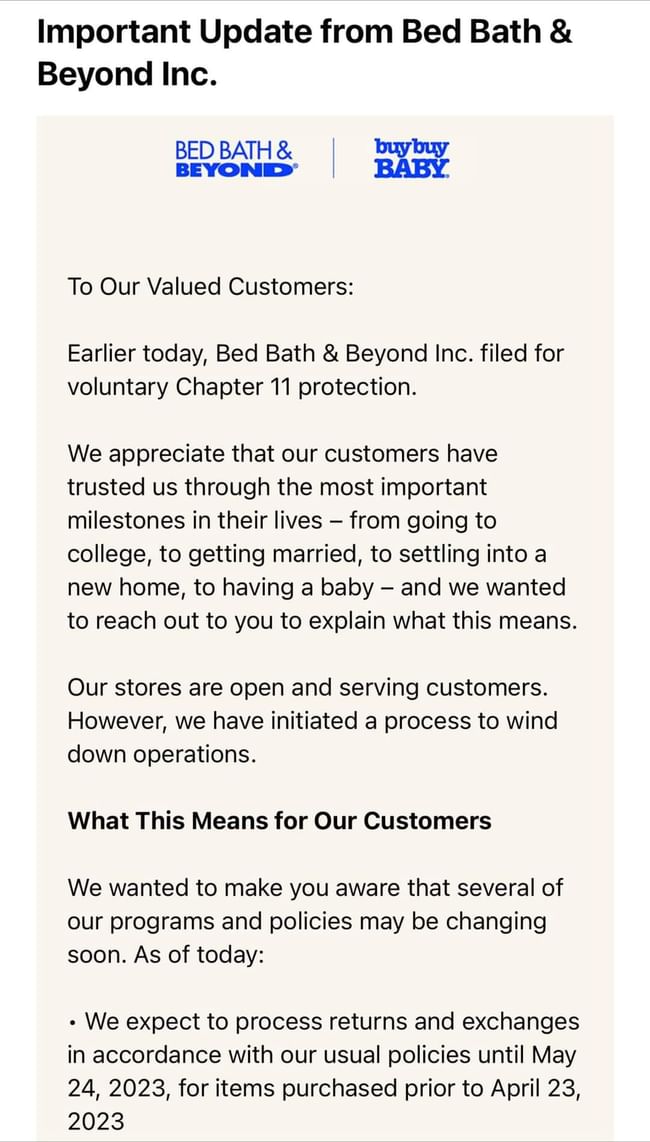 Tak společnost $BBBY dnes požádala o ochranu před bankrotem. Děje se tak po všech problémech kterými si společnost v poslední době prošla.