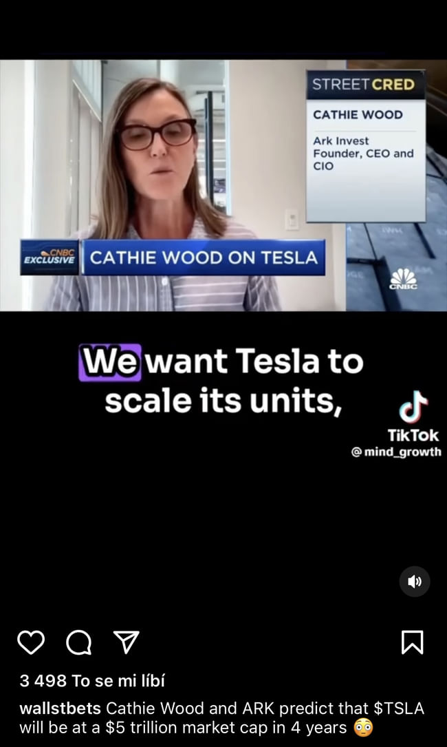 Jestli jedna z jejich predikcí vyjde, tak balím stockpicking a jdu vrážet peníze do jejich fondu 😂 Btw crazy predikce nemá jen na Teslu, zdá se mi, že u Zoomu to bylo v ještě vyšších tisících dolarů (a mezitím jsme na 63$ :D).