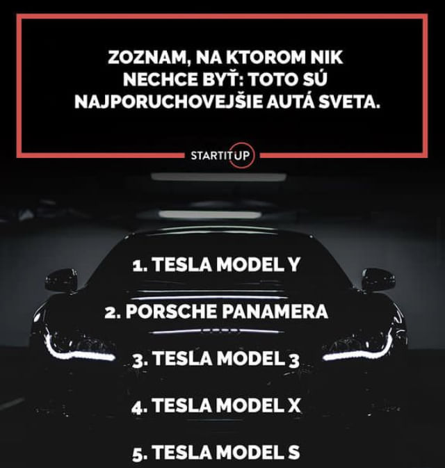 Takovej seznam si vycucám z prstu kdy budu chtít. Nevím... nikdy jsem neviděl stát porouchanou Teslu, zato spalováky od ověřených "prémiových" značek stojí u krajnice věčně