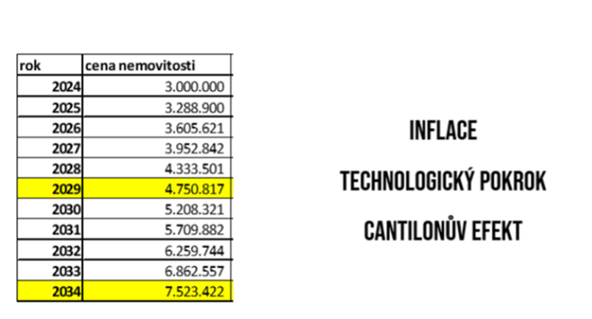V moment, kdy koupíte nemovitost, její cenu bude tlačit vzhůru inflace, technologický pokrok a Cantilonův efekt. Cantilonův efekt vyjadřuje v teorii peněz rozdílnost vlivu peněz na ekonomiku v závislosti na tom, jak a ke komu se dodatečné finanční prostředky dostanou.